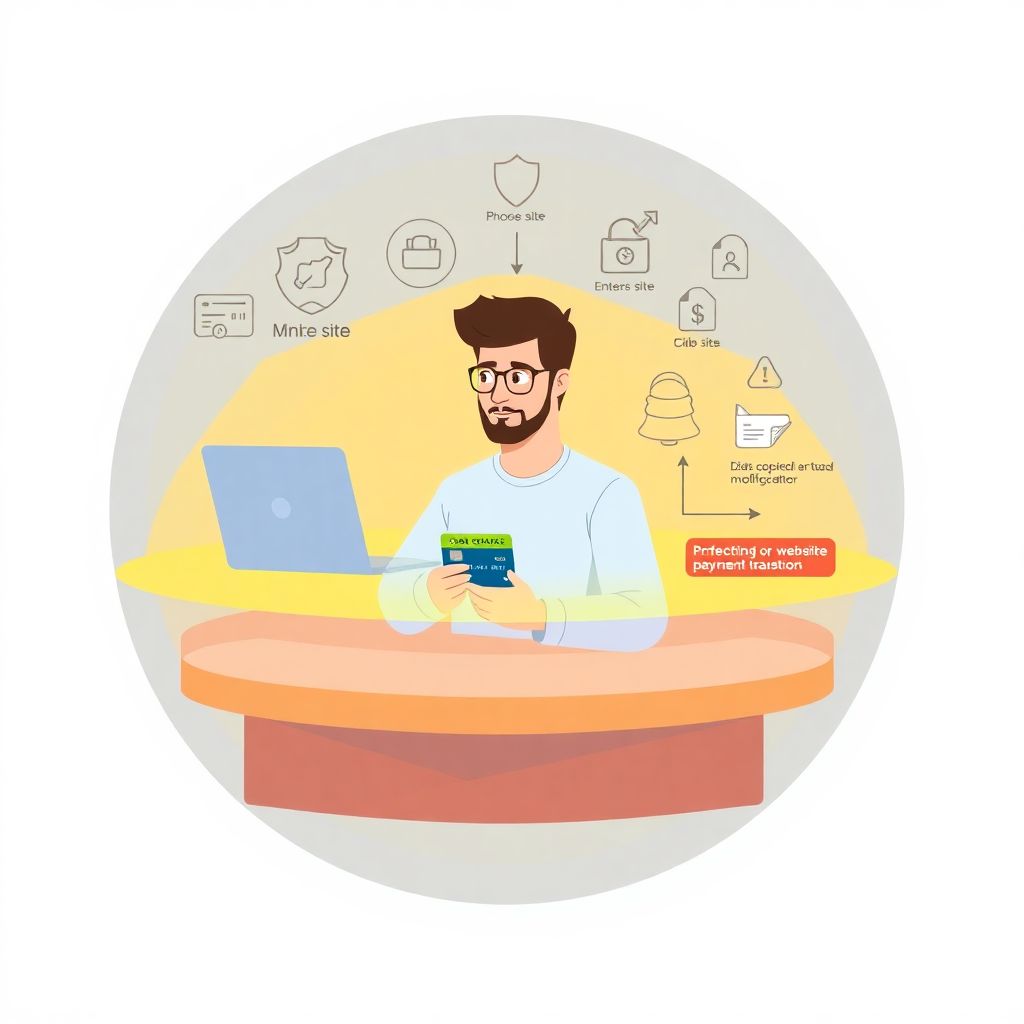 Чтобы понимать, как обезопасить банковскую карту при оплате в интернете, полезно визуализировать, как обычно выглядит атака. Представим простую текстовую диаграмму: